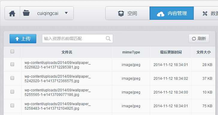 而你点击七牛云存储下的内容管理,就会发现你的博客下的所有图片都已经同步到了里面。截图如下: