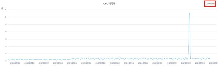 若通过快捷键设定时间范围为「过去 3 小时」或「过去 24 小时」,我们提供实时监控功能。勾选/取消勾选 各性能监控数据曲线图右上角的「实时监控」,即可 开启/关闭 监控数据实时刷新。