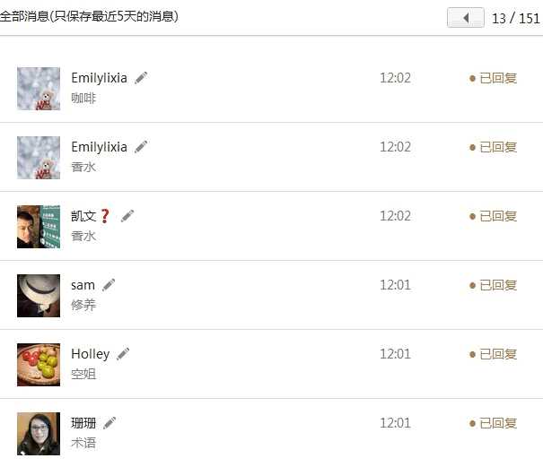关键词回复,一定要好好用,这相当于你雇佣了一个机器人24小时为你推送消息。很多人设置回复数字来获取相关图文,其实我建议是用关键词。看下图,每人经过不同的关键词就可以了解到他感兴趣的文章,除了通过菜单,我还在微信图文文末添加了私人管家部分文章导读,添加关键字和相关文章,这样还可以吸引未关注你的人来关注你。这5天消息有151页,每页有20条,一共有3000条消息,每天消息量达到600条。